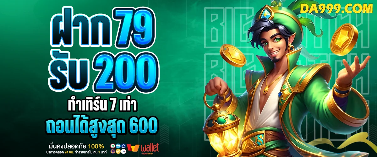 ฝาก 79 → รับเพิ่ม 121 = รวม 200 / ทำเทิร์น 7 เท่า / ถอนได้สูงสุด 600